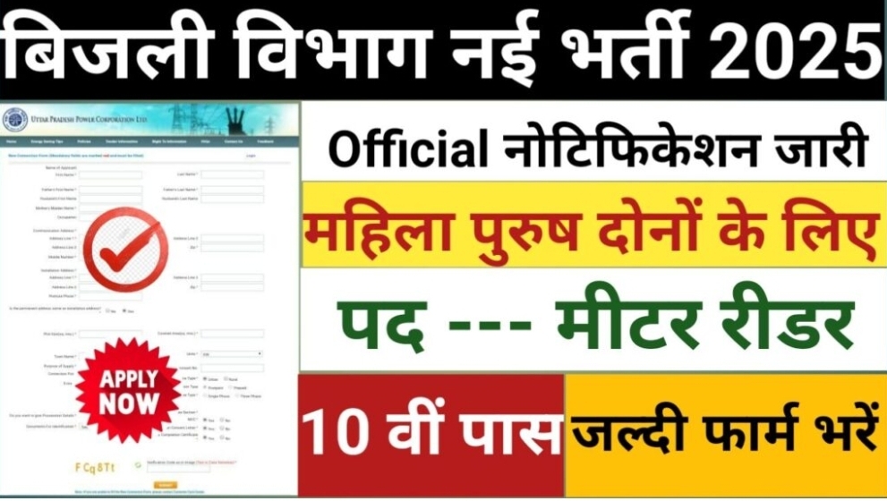 Electricity Meter Reader Vacancy: बिजली विभाग भर्ती 10वी 12वी पास के लिए फॉर्म भरना शुरू